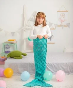 Crochetts Couverture Turquoise En écailles De Sirène 70X140 Cm
