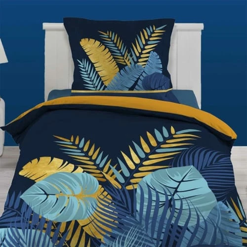 Conseil entretien : Lavez 3 fois votre linge de lit séparément avant sa première utilisation. Utilisez une lessive spéciale couleur pour préserver l’éclat des couleurs. Lavable à 40°C.
