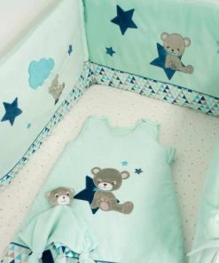 Home Maison Tour De Lit Bébé Adaptable Baby Star Bleu/Aqua 40×180